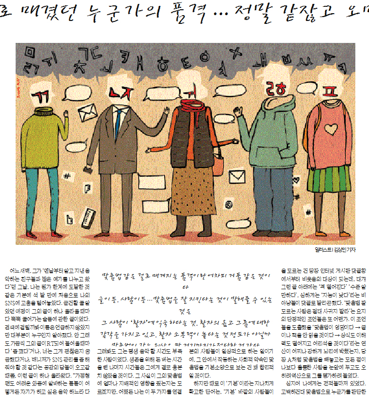 세상이야기 맞춤법 노랑가방 2019. 11. 18. 18:07 http://www.yellowbag.pe.kr/ https://www.instagram.com/yellowbag_min/ https://kimsangmin.creatorlink.net/ 공유하기 게시글 관리 노랑가방의그림이야기 '세상이야기' 카테고리의 다른 글 웃고 있는 사람들 (0) 2019.12.10 카툰공감12 (0) 2019.12.04 웰다잉 (0) 2019.11.14 웰다잉 끝인사 (0) 2019.10.17 임대주택 (0) 2019.10.09 '세상이야기' Related Articles 웃고 있는 사람들 카툰공감12 웰다잉 웰다잉 끝인사