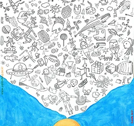 캔버스에 아크릴 펜 (61 ×72cm) 머릿속 생각들이 그림으로 나타납니다. 생각이 많을 때는 머릿속 그림들이 넘쳐나 뿜어집니다. 사랑, 우주, 책, 고민, 바다, 음식, 친구, 여행, 모험, 로봇, 괴물, 게임 등등... 그러나 아무 생각이 없을 때는 머릿속에는 텅 빈 하얀 공간뿐입니다. 아무것도 없는 하얀 공간은 생각이 넘쳐날 때 보다 더 저를 힘들게 합니다. 머리를 비워야만 새로운 아이디어가 떠오른다고 하지만, 아직은 생각이 없는 것보단, 생각이 많은 것이 저에겐 더 필요합니다. http://www.yellowbag.pe.kr/
