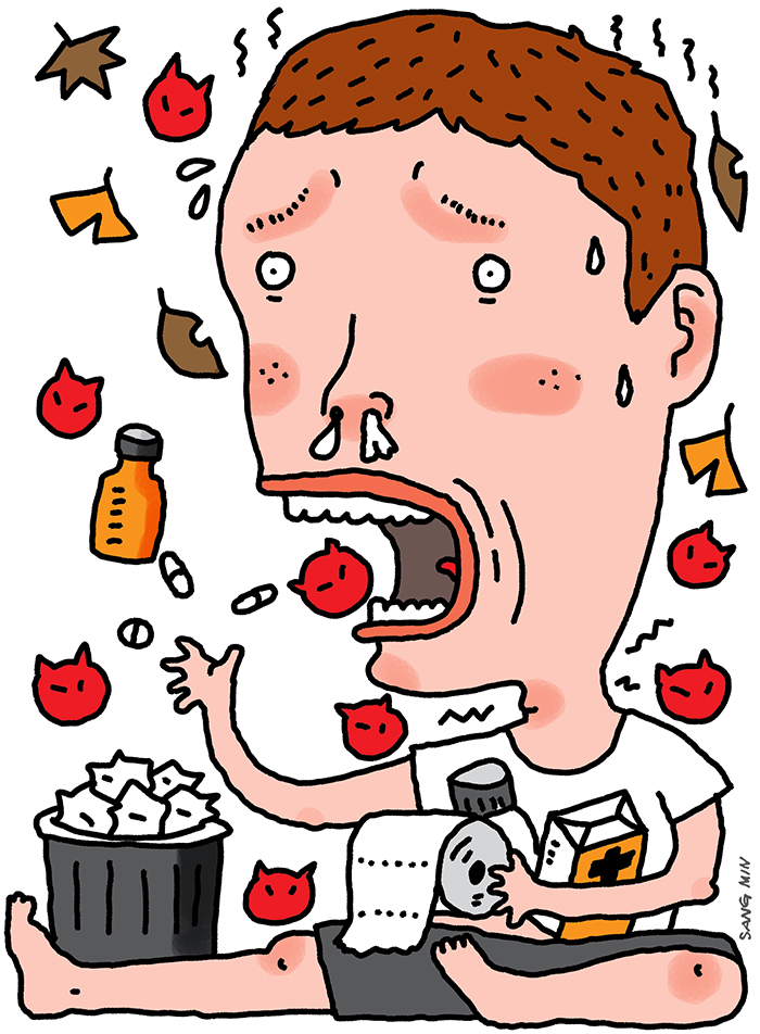 환절기에 찾아오는 비염 때문에 코는 언제나 꽉 막혀 계속 휴지를 가지고 다니며 코를 풀고,