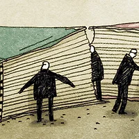 얼마 전에 우리 셋이서 가두리양식장으로 전갱이 낚시를 갔다. 물고기 키우는 칸 옆에 배를 붙이고 했다. 문제는 동식이가 똥이 마려워버린 것이다. 화장실은 저만치 떨어져 있는, 가두리 사무실이 있는 널따란 바지 위에 있었다. 동식이 아빠는 아들 손을 잡고 흔들리는 양식장 이음새를 걸어 끝까지 갔다. 그곳에서 기다란 널빤지를 타고 건너가야 화장실이다. 더 큰 문제가 생겼다. 가두리에서 키우는 진돗개가 맞은편에서 두 사람을 빤히 바라보고 있었던 것이다. 꼬리를 전혀 흔들지 않은 채. 정말로 큰 문제는 동식이 아빠가 작년에 그 개한테 다리를 물렸다는 것이다. 아빠와 아들은 서로를 붙든 채 개만 하염없이 바라보았다. 개도 그랬다. 파란 바다를 배경으로 널빤지를 사이에 둔 대치형국은 한동안 이어졌다. 넓은 어깨도, 힘도 아무 소용이 없었다.