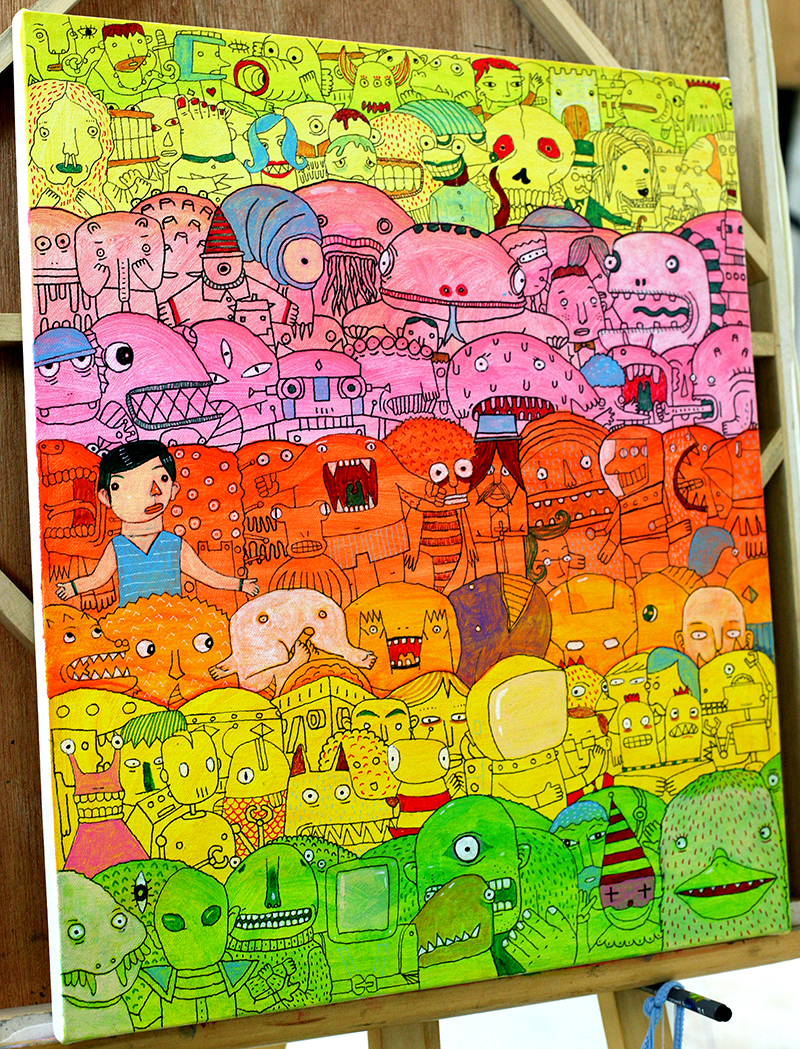 나는 지금 어디에 있는 걸까요? 잠에서 깨어 보니 온갖 이상한 생물들이 주위에 가득합니다. 어느 책이나 영화에서 많이 본 괴물들도 있고, 처음 보는 너무나 징그러운 생명체도 있습니다. 여기가 어디인지 알 수가 없습니다. 안전한 곳을 찾아 숨으려 해도 숨을 곳이 없습니다. 그런데 이 무섭고 징그러운 괴물들은 저한테는 전혀 관심이 없는 듯합니다. 또 하나의 이상한 괴물이 나타났다고 생각하는지 그냥 쳐다보고 지나쳐 버립니다. 저도 처음에는 무서워서 구석에 숨어 있었지만, 차츰 시간이 지나고 적응이 되니 자연스럽게 괴물들이 사는 나라에 있는 한 마리 평범한 괴물이 되어버렸습니다.