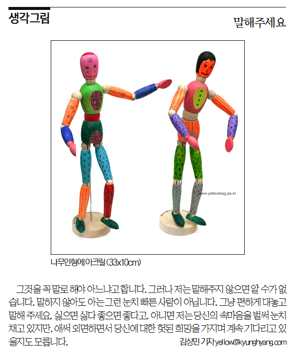 당신은 그걸 꼭 말로 해야 아느냐고 합니다. 그러나 저는 말해주지 않으면 알 수가 없습니다. 말하지 않아도 아는 그런 눈치 빠른 사람이 아닙니다. 그냥 편하게 대놓고 말해 주세요. 싫으면 싫다 좋으면 좋다고. 아니면 저는 당신의 속 마음을 벌써 눈치채고 있지만, 애써 외면하면서 당신에 대한 헛된 희망을 가지며 계속 기다리고 있을지도 모릅니다.