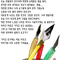 그림이야기 안 본 눈 삽니다.- 생각그림 노랑가방 2019. 1. 17. 08:54 종이에 오일파스텔 (20x30cm) 보기 싫은 것들이 너무나 많습니다. 보고 싶지 않은 것들이 너무나 많습니다. 안 보고 싶은 것들이 너무나 많습니다. 그러나 어쩔 수 없이 자꾸 그건 것들이 눈에 들어옵니다. 피하고 피할 수도 없습니다. 적당히 안 본체 하고 넘어가려 하지만, 잊히지 않고 자꾸만 머릿속에서 맴돌고 있습니다. 정말 살 수만 있다면 그것을 안 본 눈을 사고 싶습니다. http://www.yellowbag.pe.kr/ 공유하기 게시글 관리 노랑가방의그림이야기 '그림이야기' 카테고리의 다른 글 다양한 사람들 생각그림 (0) 2019.01.24 잠시 (0) 2019.01.24 탈출 (0) 2019.01.17 펜 (0) 2019.01.15 월요병 (0) 2019.01.14 '그림이야기' Related Articles 다양한 사람들 생각그림 잠시 탈출 펜