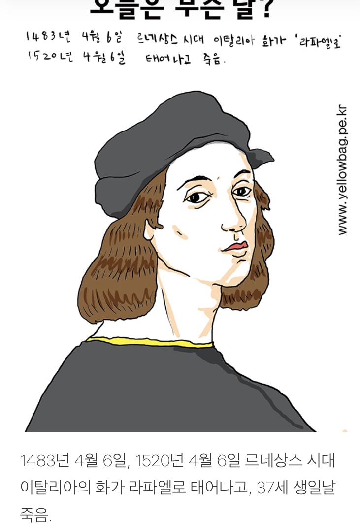 그는 어릴 때부터 화가인 아버지로 부터 미술을 배웠고 16세에 그의 천재성을 세상에 알렸다. 미켈란젤로, 레오나르도 다 빈치가 있는 피렌체에서 수많은 작품을 제작하였고, 후에 교황의 부름을 받고 로마로 가 작업하였다. 교황 레오 10세는 그의 천재성을 알아보고 추기경 직위를 내리려 했으나 37세 생일에 갑자기 죽게 되었다. 그를 애도하여 국가 장례를 치르게 하고 라파엘로는 로마의 판테온에 묻혔다. 그의 대표작은 <아테네 학당>이 있다.