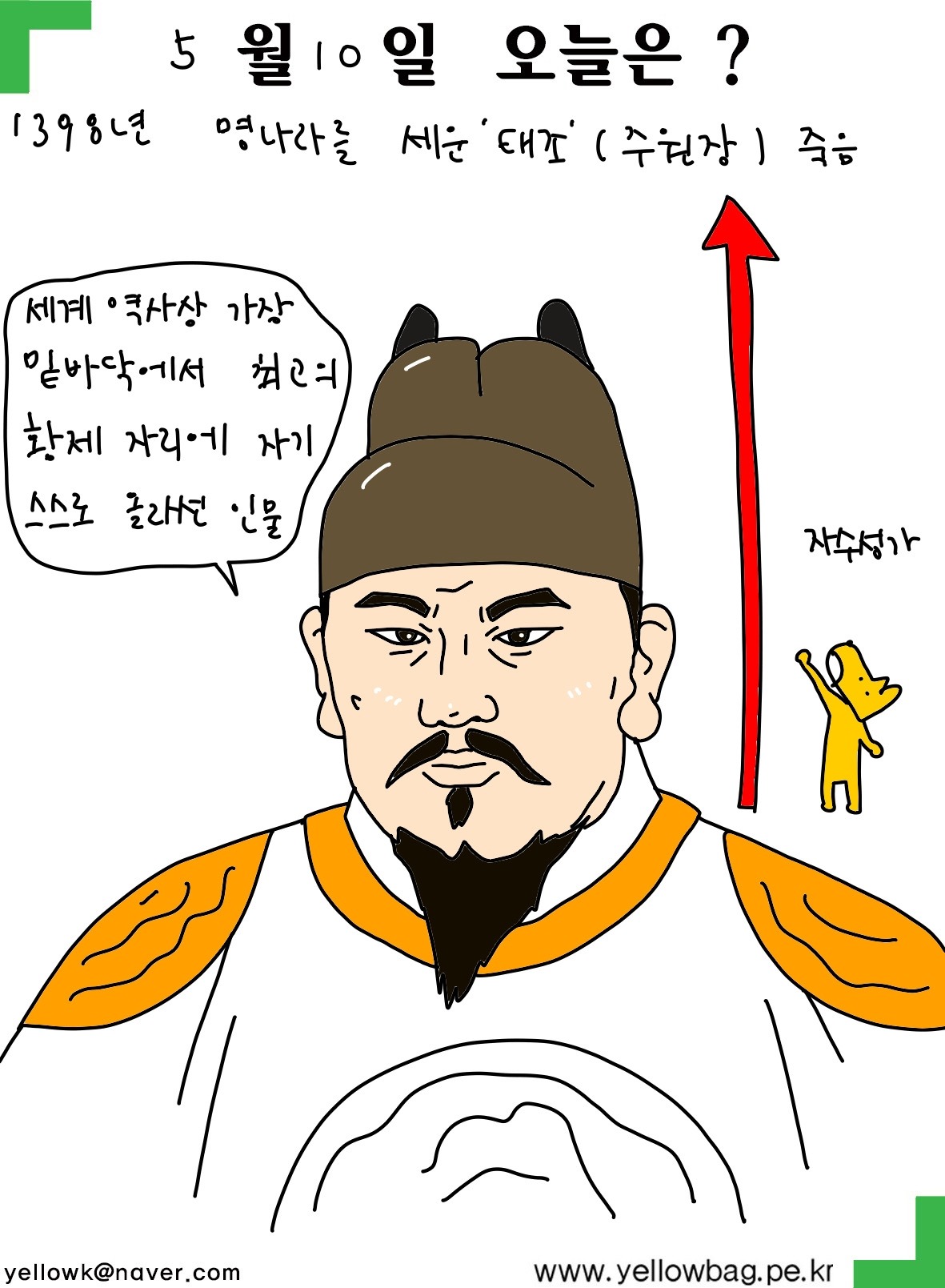 1398년 명나라 태조 주원장 죽음 가장 하층민에서 최고의 황제 자리에 자기 힘으로 오른 자수성가의 대가 또 황제가 된 이후 자기 주위의 공신들과 친인척을 모두 숙청해 버린 숙청의 대가