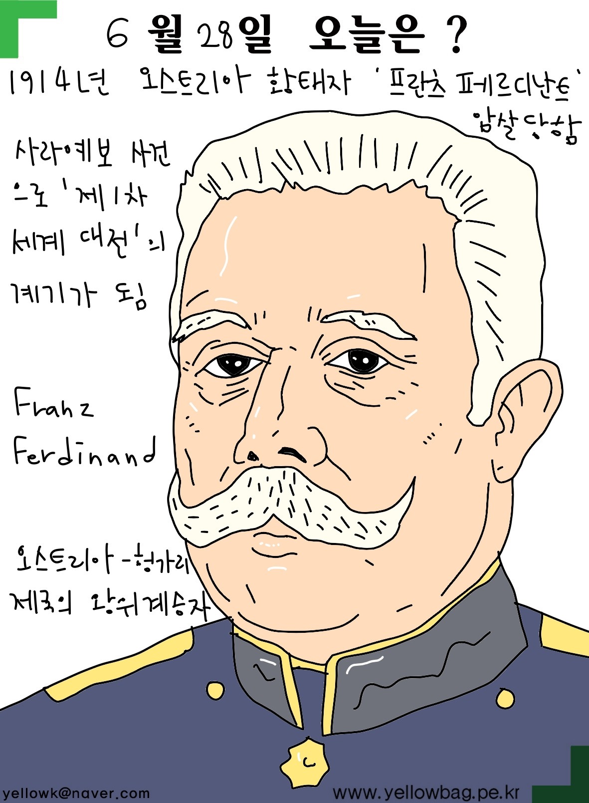 1914년 오스트리아 헝가리 제국 왕위계승자 프란츠 페르디난트 사라예보에서 암살당함