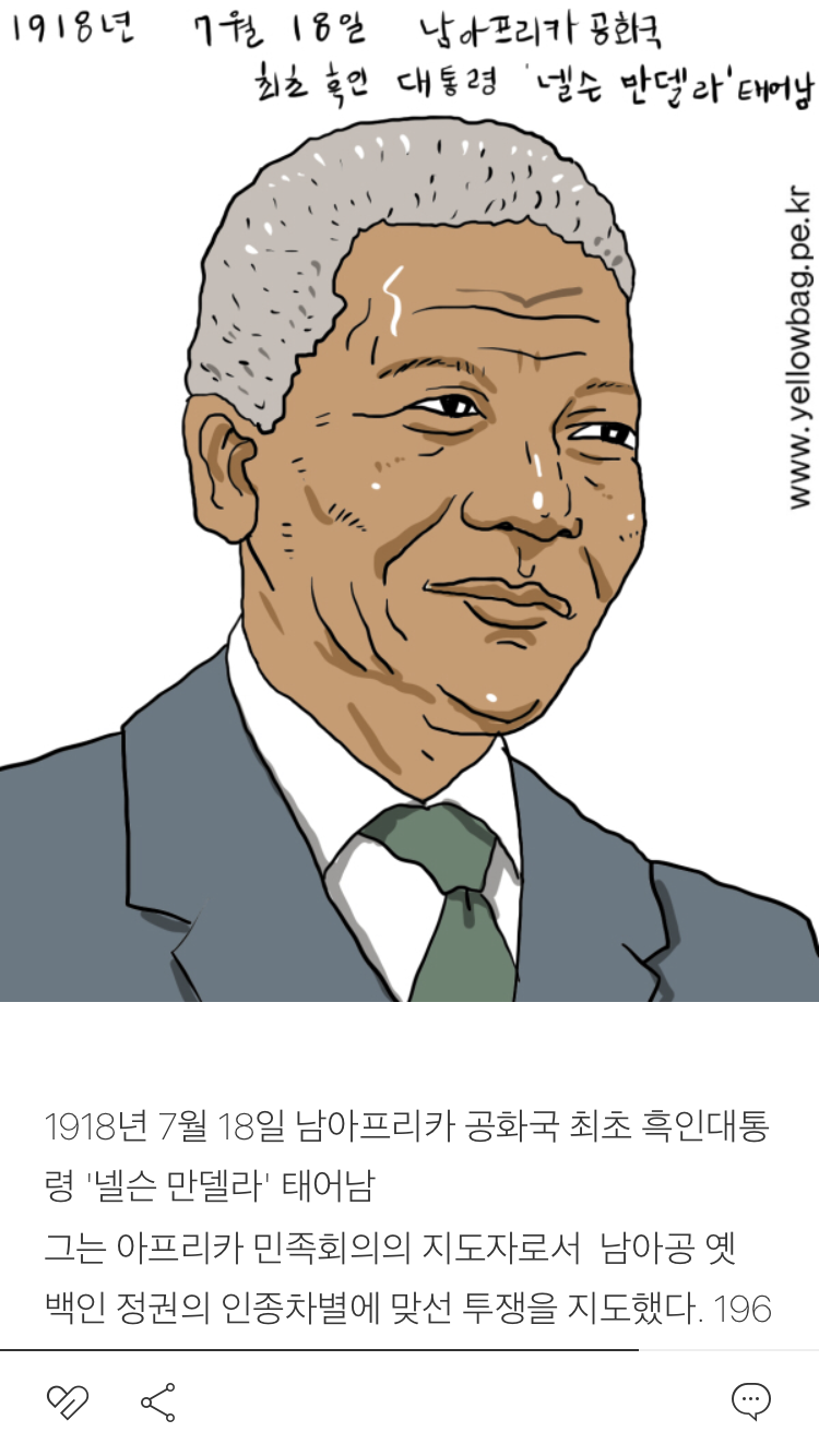 그는 아프리카 민족회의의 지도자로서 남아공 옛 백인 정권의 인종차별에 맞선 투쟁을 지도했다. 1962년 8월 5일 반역죄로 체포되었고 27년만인 1990년 2월 11일에 출소하였다. 1993년 데 클레르크 대통령과 함께 노벨 평화상을 수상하였다. 그의 저서<자유를 향한 긴 여정>은 뉴욕 타임즈가 뽑은 20세기 최고의 책에 선정되었다. 그는 2013년 12월 5일 95세를 일기로 타계했다.