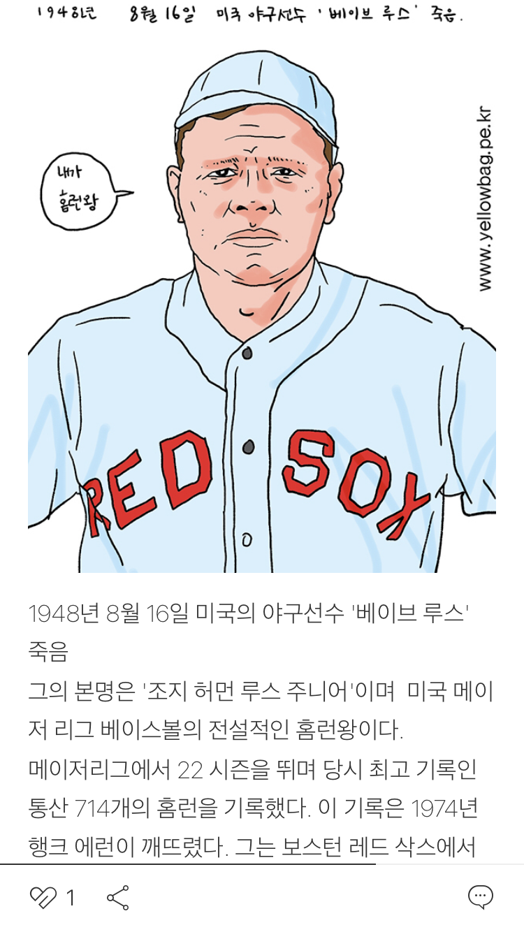 메이저리그에서 22 시즌을 뛰며 당시 최고 기록인 통산 714개의 홈런을 기록했다. 이 기록은 1974년 행크 에런이 깨뜨렸다. 그는 보스턴 레드 삭스에서 왼손 투수로 시작하였지만, 뛰어난 타격 재능으로 타자로 전향해 홈런왕을 차지하였다. 연극 연출가이자 제작자였던 레드삭스의 구단주 해리 프레이지는 새로운 뮤지컬 제작 비용을 위해 지난 5년간 3번의 월드 챔피언을 가져다준 루스를 양키스에 12만 5천 달러에 팔았다. 공교롭게도 레드삭스는 그 뒤 2004년까지 86년간 월드시리즈에서 한 번도 우승하지 못했는데, 이를 밤비노의 저주라고 불렀다. 베이비 루스는 12번 홈런왕에 올랐고 통산 714개의 홈런과 2217타점, 342의 타율을 기록했다.