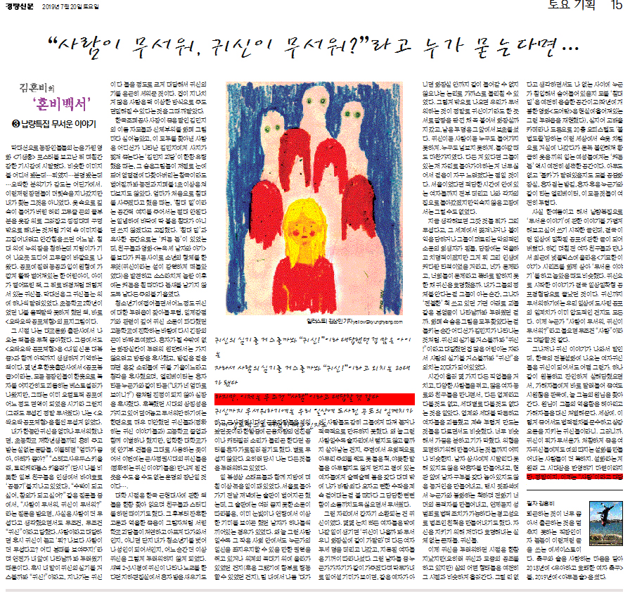 예전엔 매일 가위에 눌린 적이 있었다. 아파트 지하실에서 작업실을 만들어 살고 있었을 때였는데 잠이 들락 말락 할 때 언제나 하얀 옷을 입은 무언가가 나에게 날아와 나를 잡고 어디론가 끌고 갈려고 그랬다. 난 안 끌려 갈려고 발버둥을 쳐대다 겨우 겨우 깨어나 그 상황을 끝낼 수가 있었다. 잠은 안 든 상태? 그리고 꿈은 아닌 상태? 그 꿈과 현실 사이의 틈을 비집고 그 귀신은 매일 날 찾아왔다. 몸을 움직이고 소리를 치고 싶지만 움직일 수도 말할 수도 없었다. 그 작업실을 나오고 나서야 더 이상 가위에 눌리지 않았지만, 그 이후 정말 귀신이나 유령 같은 그 무엇인가가 있다고 믿게 되었다. 근데 그 귀신은 전설의 고향처럼 나에게 자기의 억울함을 풀어달라고 나를 어디론가 데려가려 그랬을까? 아님 날 잡아먹으려고 그랬을까? 아직도 궁금하지만 이 글을 쓰는 순간에도 그 일을 생각하니 온 몸이 소름이 돋고 추워진다.