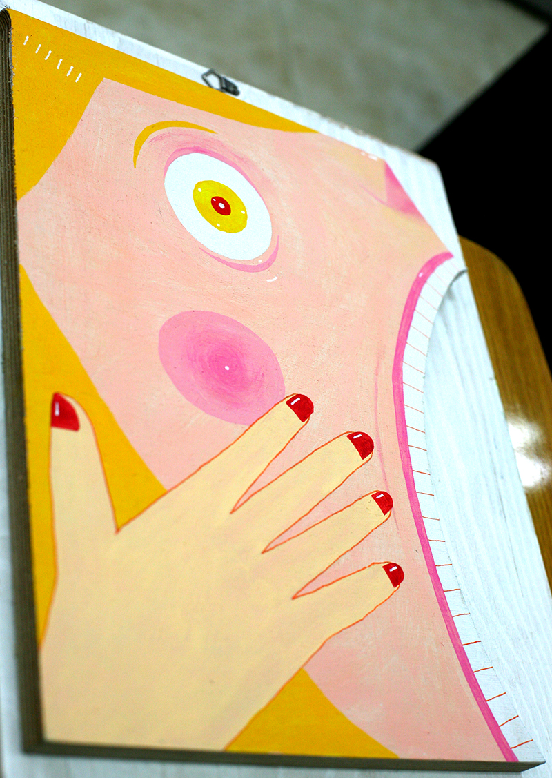 특이하게 잘려 있는 나무 조각을 주웠습니다. 나무 공방에서 무언가를 만들려고 하다 잘못 잘라버린 조각인 듯합니다. 그 나무 조각에서 무언가가 보이는 듯하여 작업실에 와서 보이는 대로 그려 봅니다. 제가 보기에는 깜짝 놀라 입을 한껏 벌리고 있는 사람의 모습이었는데, 또 다른 사람이 보면 다른 모습으로 보일 수도 있을 거 같습니다. 모두 자기가 보고 싶어 하는 것을 보고 자기가 아는 만큼 보이겠지요? 지금 잠시 나의 주위를 다시 둘러봅니다. 안보이던 것들이 다시 보이기 시작하길 바라면서...
