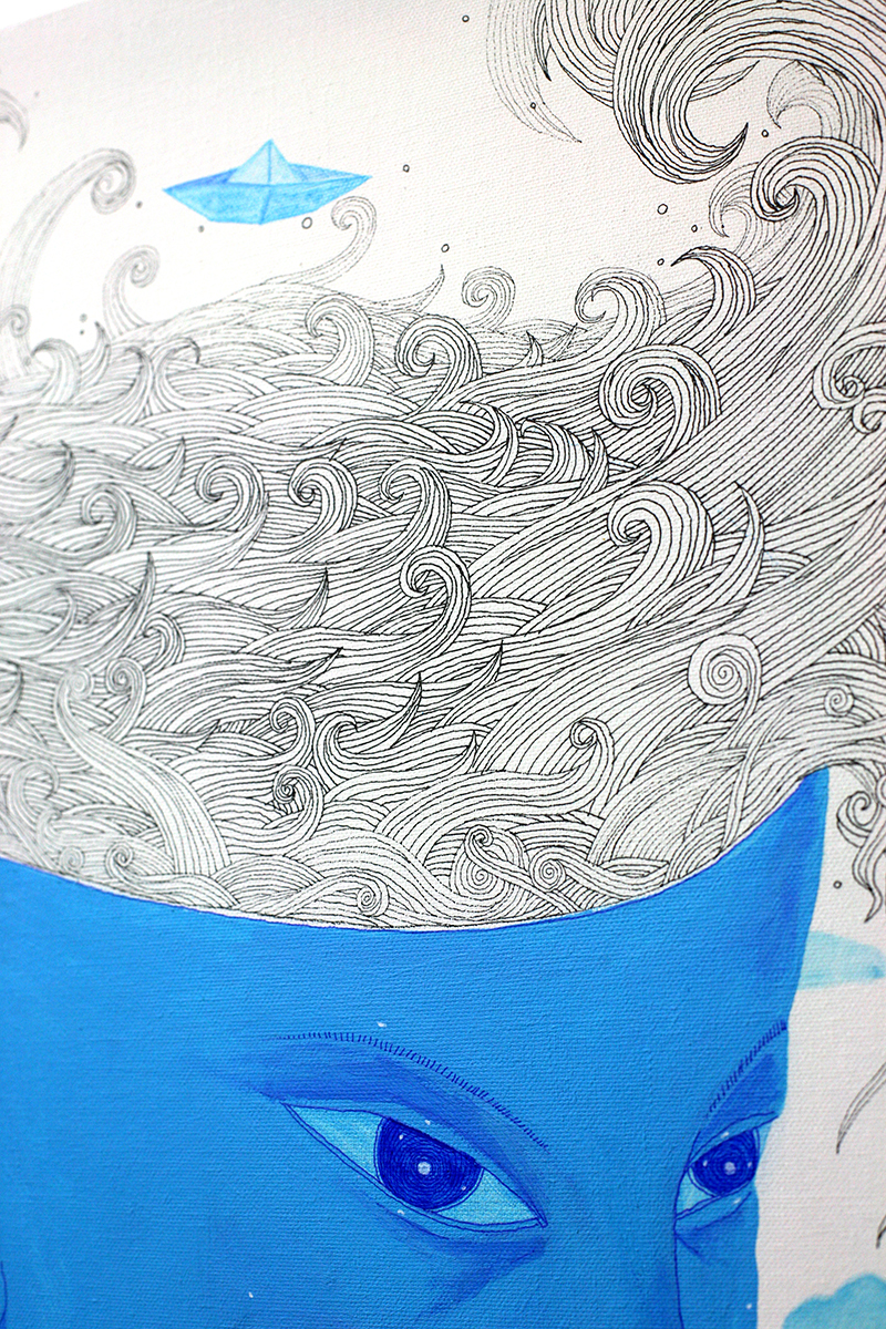 태풍 한가운데 있는 것처럼 강하게 휘몰아치고 있습니다. 멈출 기미는 보이지 않고 점점 더 거세지고만 있습니다. 잠잠 해지기를 기다려 보지만 서로 부딪치며 싸우며 더 강해지기만 합니다. 저 깊은 곳에서는 이제 그만하자며 외쳐 보지만 여기 위쪽까지 전달되려면 한참 걸릴듯합니다. 밖은 아무도 움직임도 없고 평온한데 나의 작은 머릿속에서는 태풍이 지나가는 것처럼 오만가지 생각들이 소용돌이치며 뒤섞이고 있습니다. 이럴 땐 아예 아무 생각하지 말고 마음과 머리를 비우고 천천히 한 줄 한 줄 그림을 그려 봅니다.
