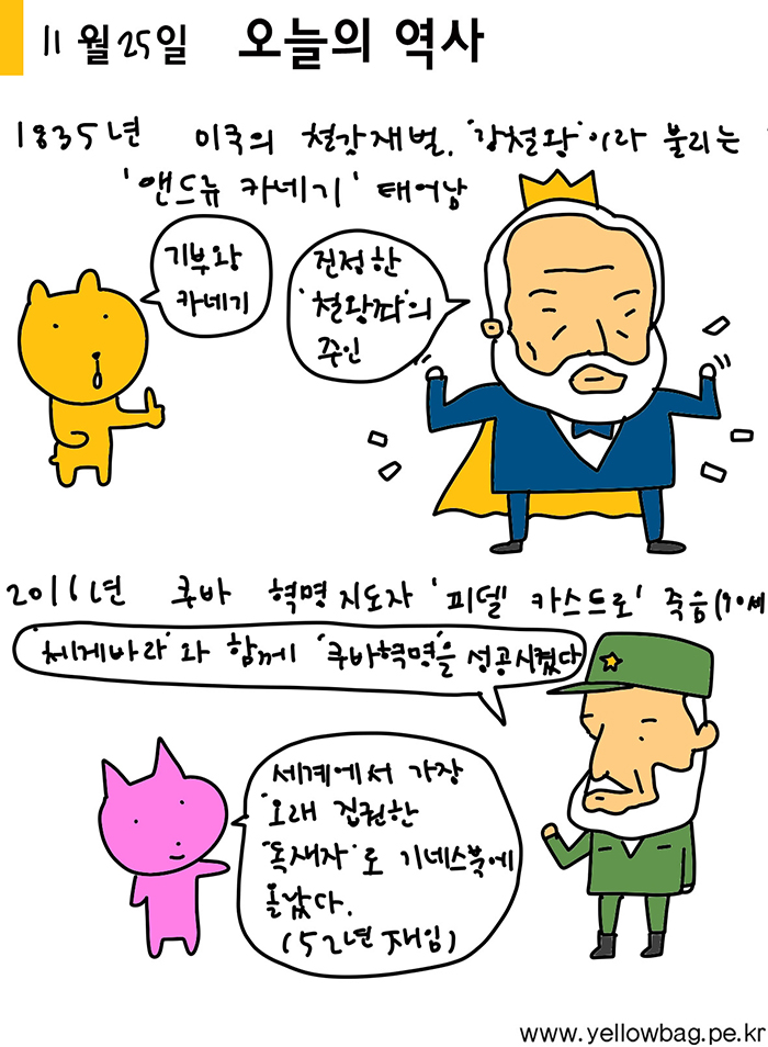 오늘의역사 11월25일 오늘의역사 카네기 노랑가방 2019. 11. 25. 10:10 http://www.yellowbag.pe.kr/ https://www.instagram.com/yellowbag_min/ https://kimsangmin.creatorlink.net/ https://yellowbag.tistory.com/