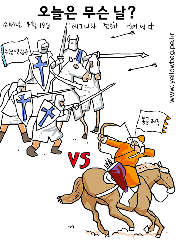 1241년 4월 19일 폴란드의 레그니차에서 몽골 제국의 바투 군대와 헨리크 2세가 지휘한 폴란드 및 유럽 연합군의 전투가 벌어졌다. 이 레그니차 전투는 유럽에 몽골군의 전투력을 직접적으로 보여주는 계기가 되었다. 당시 몽골제국은 아시아 지역을 대부분 정복하고 러시아를 초토화시키고 서부 유럽으로 진군하고 있었다. 1241년 초 헝가리 왕 벨라에게 자신을 하늘의 사자로 소개한 칭기즈칸 손자 바투가 서신을 보내 즉각 항복하라 했다. 이에 놀란 헝가리 왕은 교황에게 구원 요청을 했다. 그러나 몽골군은 예상보다 빨리 헝가리에 진군하였다. 1241년 4월 19일 슐레지엔 공 하인리는 폴란드와 유럽 각국에 군사를 모아 레그니차 동남쪽에 포진하여 몽골군과 대적하였다. 유럽 기사들은 무게가 10킬로에 달하는 사슬 갑옷과 투구를 쓰고 방패와 3미터 길이의 장창, 장검, 도끼 등을 휴대하였고, 말들도 사슬 갑옷을 걸쳤다. 이에 반해 몽골군은 볼품없는 조랑말을 타고 작은 활과 단도만 차고 있었다. 그러나 몽골군은 항시 여유분의 말을 가지고 다니면서 번갈아가며 말을 타며 기동동을 발휘하며 일부러 퇴각하는 것처럼 도망치다 적의 전열이 무너지면 뒤돌아 활을 쏘며 공격하였다. 이 전투로 헨리크 2세는 전사하고 유럽 연합군은 패하였다. 바트는 뒤이어 벌어진 모히 전투에서도 유럽연합군을 격파해 유럽을 공포에 떨게 하였다. 하지만 원나라의 오고타이 칸이 사망하는 바람에 회군 명령으로 몽골군은 유럽 정복을 포기하게 되었다. 만약 바투 군이 그대로 서유럽으로 진격하였다면 영국 빼곤 전 유럽이 몽골의 땅이 되었을 것이다.