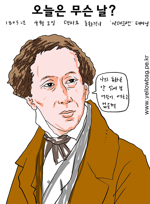 1805년 4월 2일 덴마크의 동화작가 한스 크리스티안 안데르센 태어남.