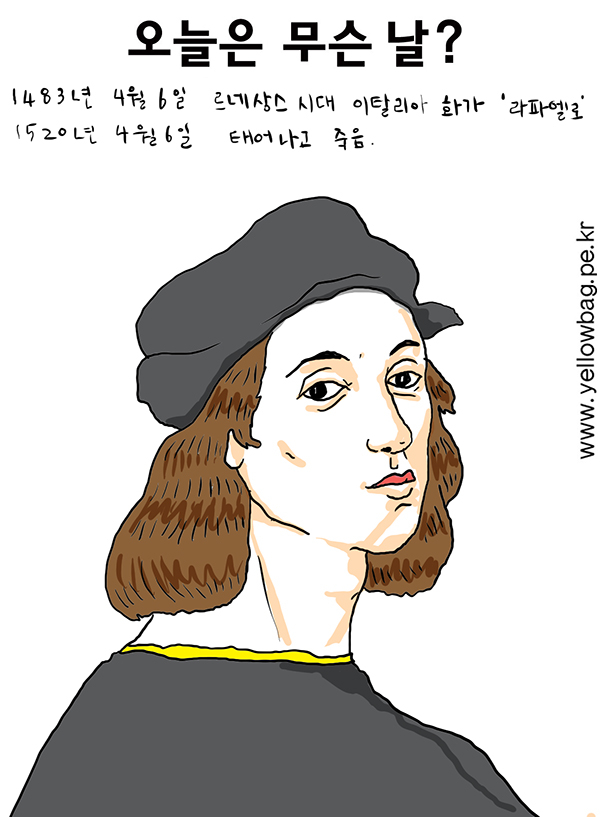 1483년 4월 6일, 1520년 4월 6일 르네상스 시대 이탈리아의 화가 라파엘로 태어나고, 37세 생일날 죽음.