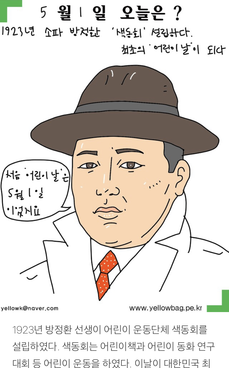 1923년 방정환 선생이 어린이 운동단체 색동회를 설립하였다. 색동회는 어린이책과 어린이 동화 연구대회 등 어린이 운동을 하였다. 이날이 대한민국 최초의 어린이 날이 되었다. 1961년 5월 5일로 어린이날이 변경되었다.