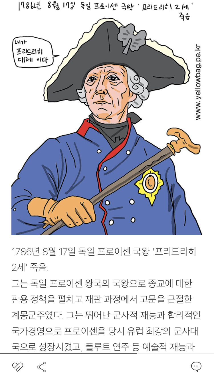 그는 독일 프로이센 왕국의 국왕으로 종교에 대한 관용 정책을 펼치고 재판 과정에서 고문을 근절한 계몽군주였다. 그는 뛰어난 군사적 재능과 합리적인 국가경영으로 프로이센을 당시 유럽 최강의 군사대국으로 성장시켰고, 플루트 연주 등 예술적 재능과 관심까지 겸비한 계몽 전제군주의 전형으로 여겨진다.
